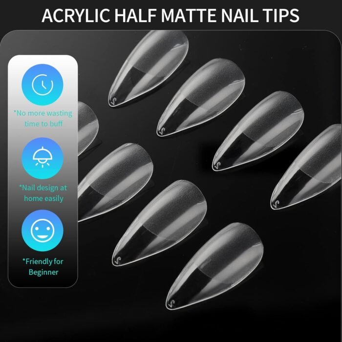 【Single Sided Half Matte Almond Nail Tips Kit】–What you will get: 1 x 144 pcs half matte false nail tips, 5 x adhesive tapes for nail tips, 5 x orange nail sticks, 1 x nail files 100/180|We have a very wide range of professional, practical and varied nail art tools to meet your needs!