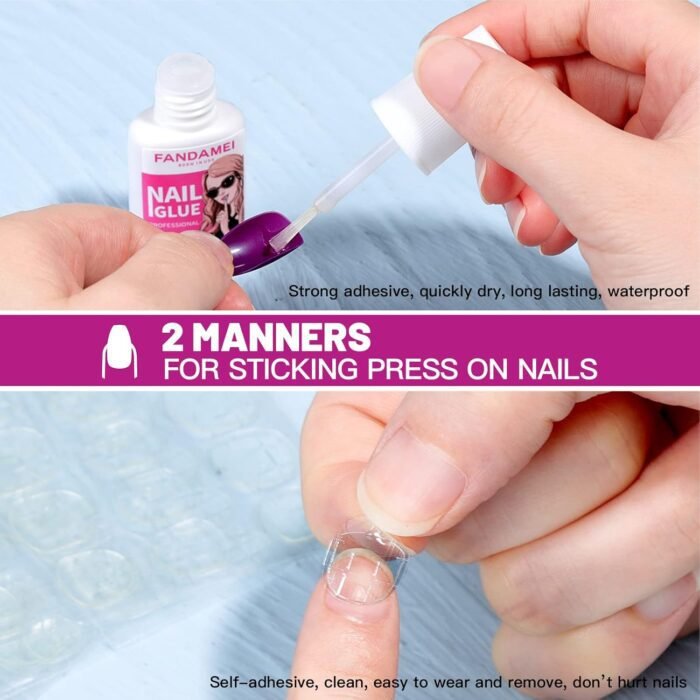 10g Nail Glues: Nail tips glue is designed with a applicator brush that is easier to use than the squeeze bottle. Strong adhesive, quickly dry and long lasting, perfect for sticking artificial nail tips, small nail art decorations such as rhinestone, glitters, flakes,etc. Great for DIY nails. Only 3/5 bottle filled to avoid the glue leaking under high temperature. If you want to keep the press on nails for long time, please select the nail glue to stick the press on nails.