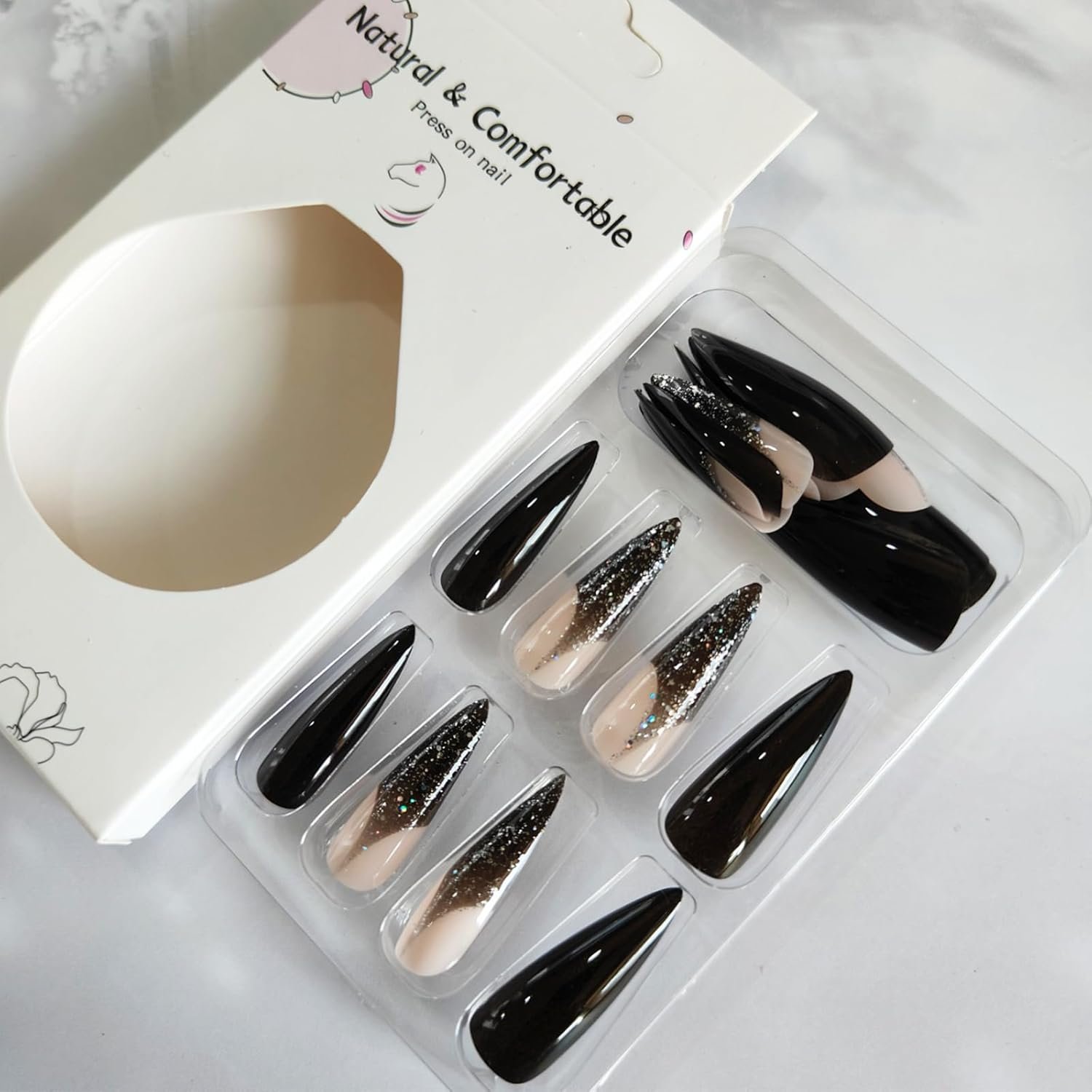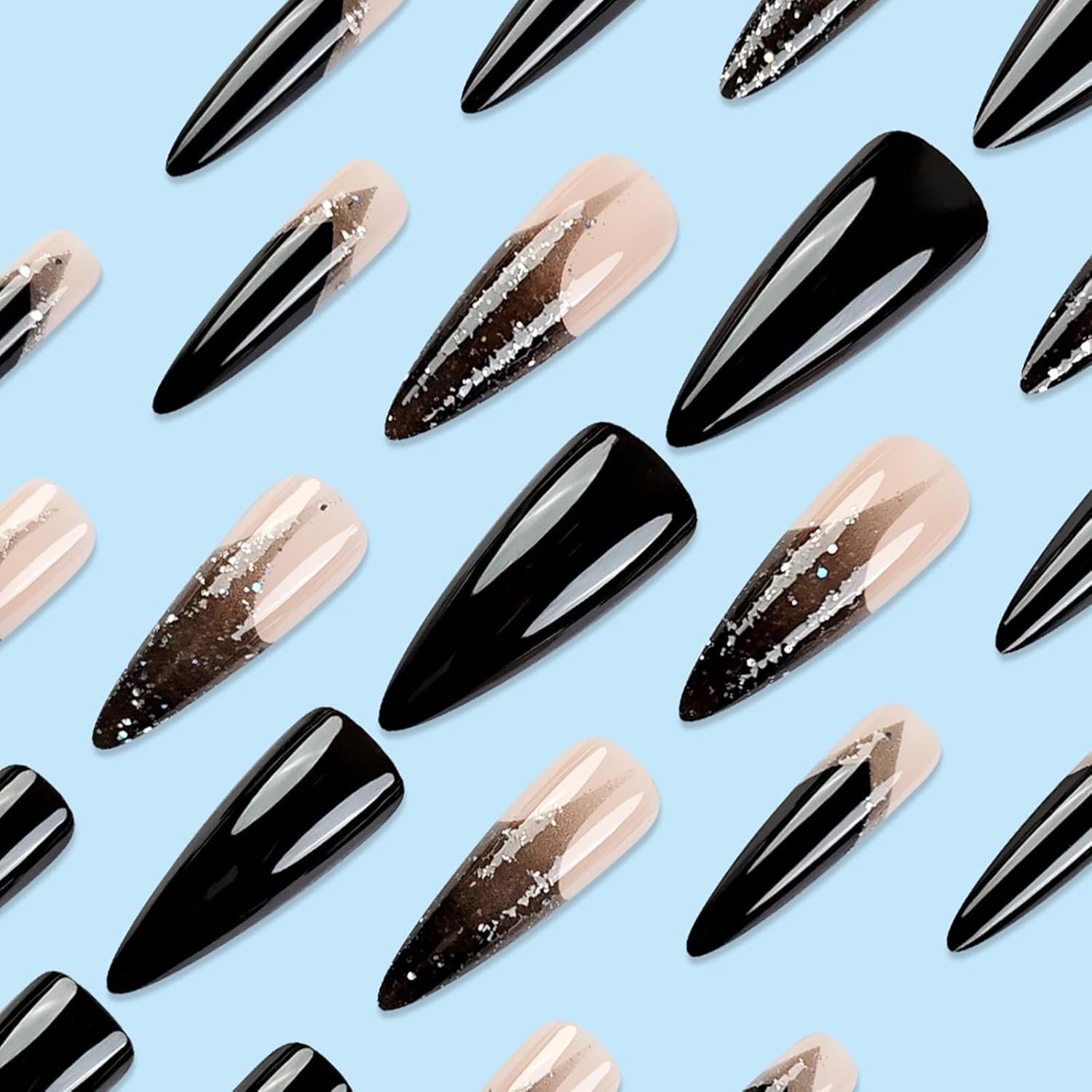 Multiple Sizes: The black fake nails come in 12 sizes. Depending on the size and width of your nails, you can choose the false nails that best suit you. But the tip edge of the false nails is not completely smooth and needs to be polished with a nail file