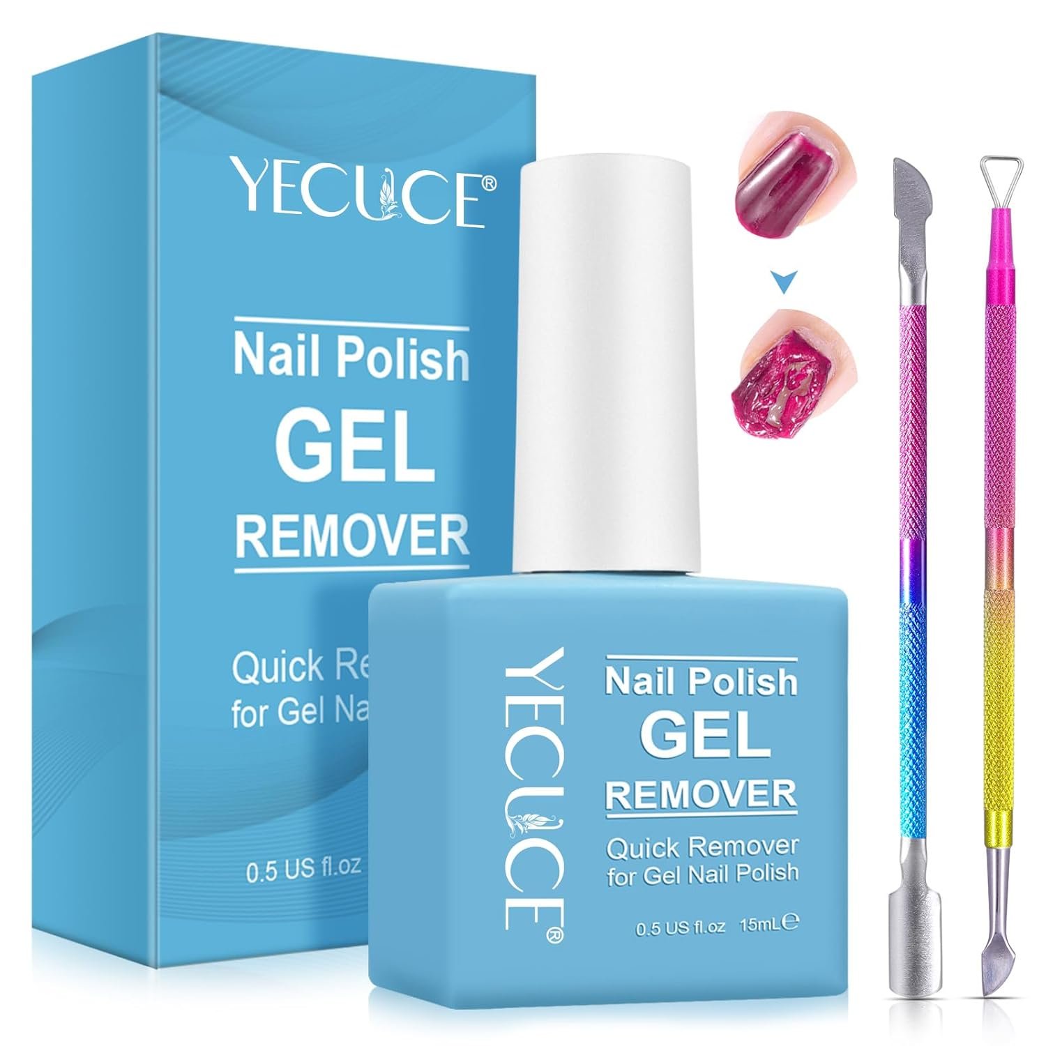 Safe and Effective: Our gel nail care product is not only convenient but also safe and effective. No more soaking in harsh acetone or dealing with foils and scraping. Simply apply, let it do its magic, and peel off! It effortlessly removes nail glue, gel, shellac, glitter, dark colors, and even artificial nails without causing any damage
