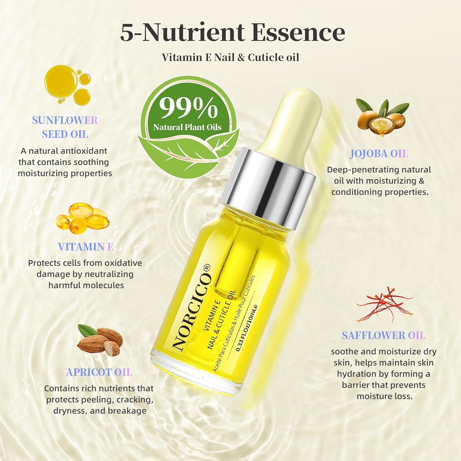 Revitalizing Cuticle Oil for Nails Enriched with Vitamins, Infused with vitamin E and jojoba oil, this premium oil repairs cracks, prevents peeling, and stimulates growth. Lock in moisture post-removal for salon-worthy nail health between manicures.