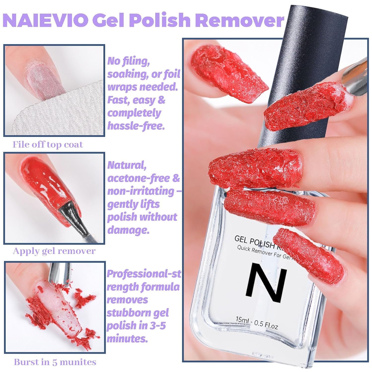NAIEVIO Specially formulated for quick, gentle, and effective removal, this little miracle worker lets you change up your nail style anytime, anywhere. No more salon appointments or damaging acetone soaks — just beautiful, healthy nails at your fingertips!