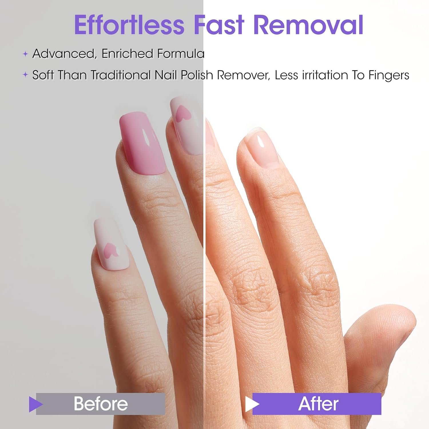 Acetone-Free & Odor-Minimizing Formula: Say goodbye to harsh fumes and dryness. This non-acetone remover dissolves layers of polish without the typical strong chemical scent or hard dehydrating effect—ideal for frequent users and those with sensitive nails or skin.