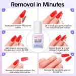 【5s Quick Dry Nail Glue, No Curing Needed, Save Your Time】: The brush on nail glue is equipped with a precision brush to prevent any overflow during application, making it beginner-friendly. It provides quick process within 5 seconds and dries rapidly in the air. Moreover, this professional nail glue requires only a small amount for optimal results, effortlessly attach to press-on nails without causing any damage upon removal.