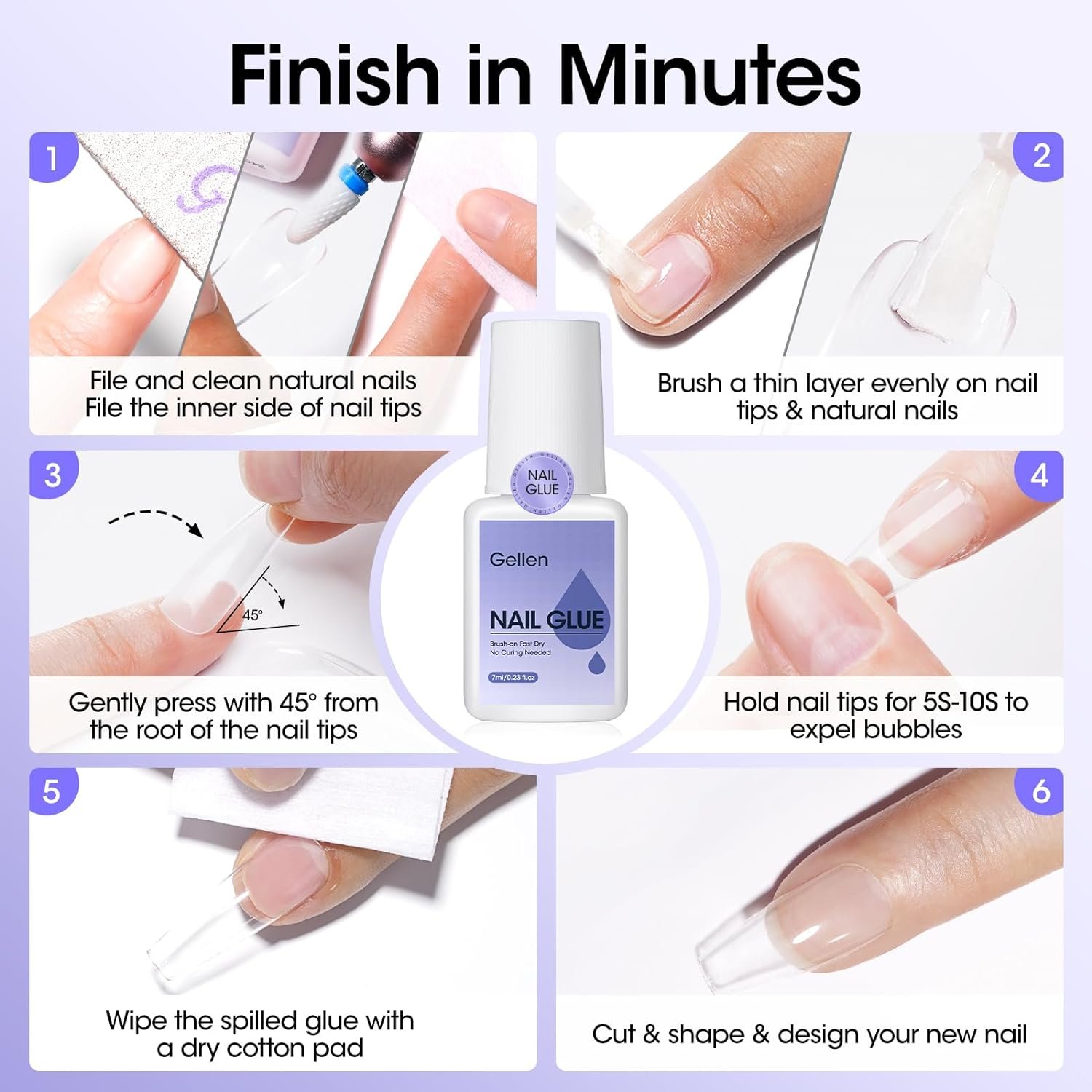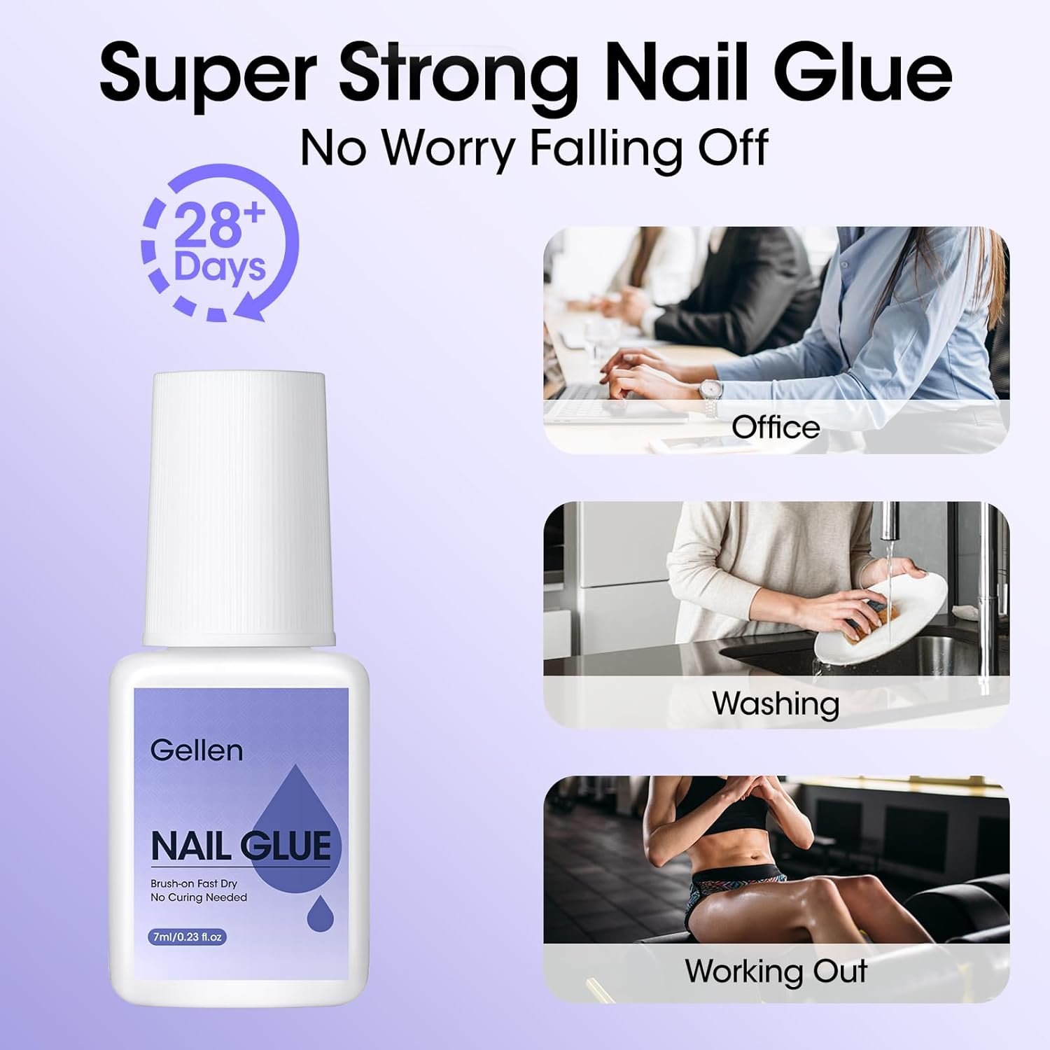 【Super Strong Gel Nail Glue, Long Lasting for 28+ Days】: The Gellen nail glue is formulated with a potent liquid adhesive ingredient, ensuring effortless application and long-lasting hold for up to 4 weeks on press-on nails, fake nails… You can trust that your nail art will remain durable without any concerns of detachment. Additionally, this exceptional nail tip glue possesses the ability to securely apply small rhinestones, beads, or other intricate nail art designs.