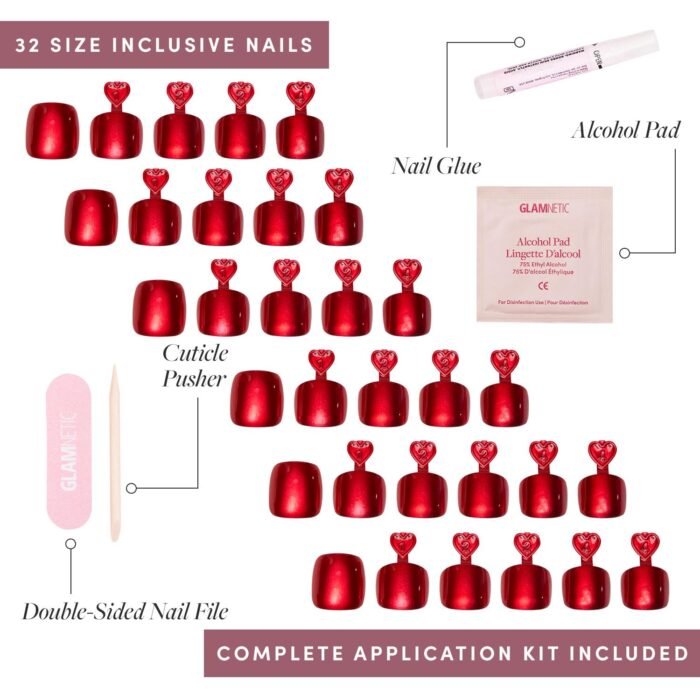 High-Quality Press-On Toenails Kit: All Glamnetic Press-On Toenail Kits offer high-quality salon style and feature protective UV coating, to ensure your set won’t break or split for up to 2 weeks!
