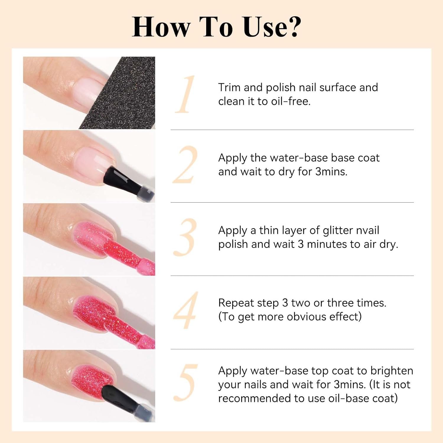 Quick Dry Glitter Nail Polish: Adopts a fast-drying formula, which can be colored quickly and air dries quickly within 3 minutes, does not require any other tools such as UV lamps, getting the desired manicure effect in a few minutes