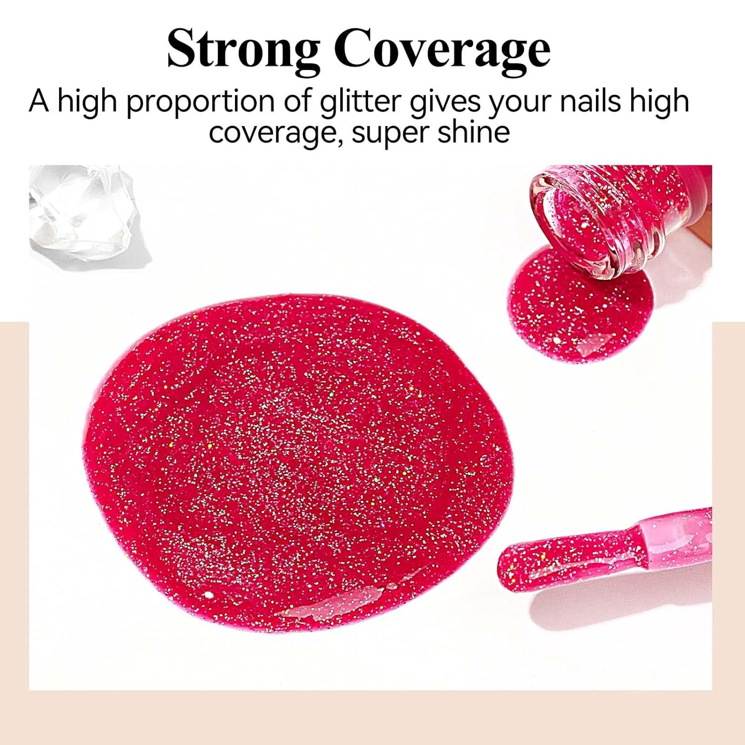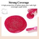 High Coverage Shimmer Effect: The glitter is dense, but not too thick, Usually we recommend applying 3 coats to get opaque coverage; The shimmer glitter nail polish is great for finger and toe use, makes a great nail look