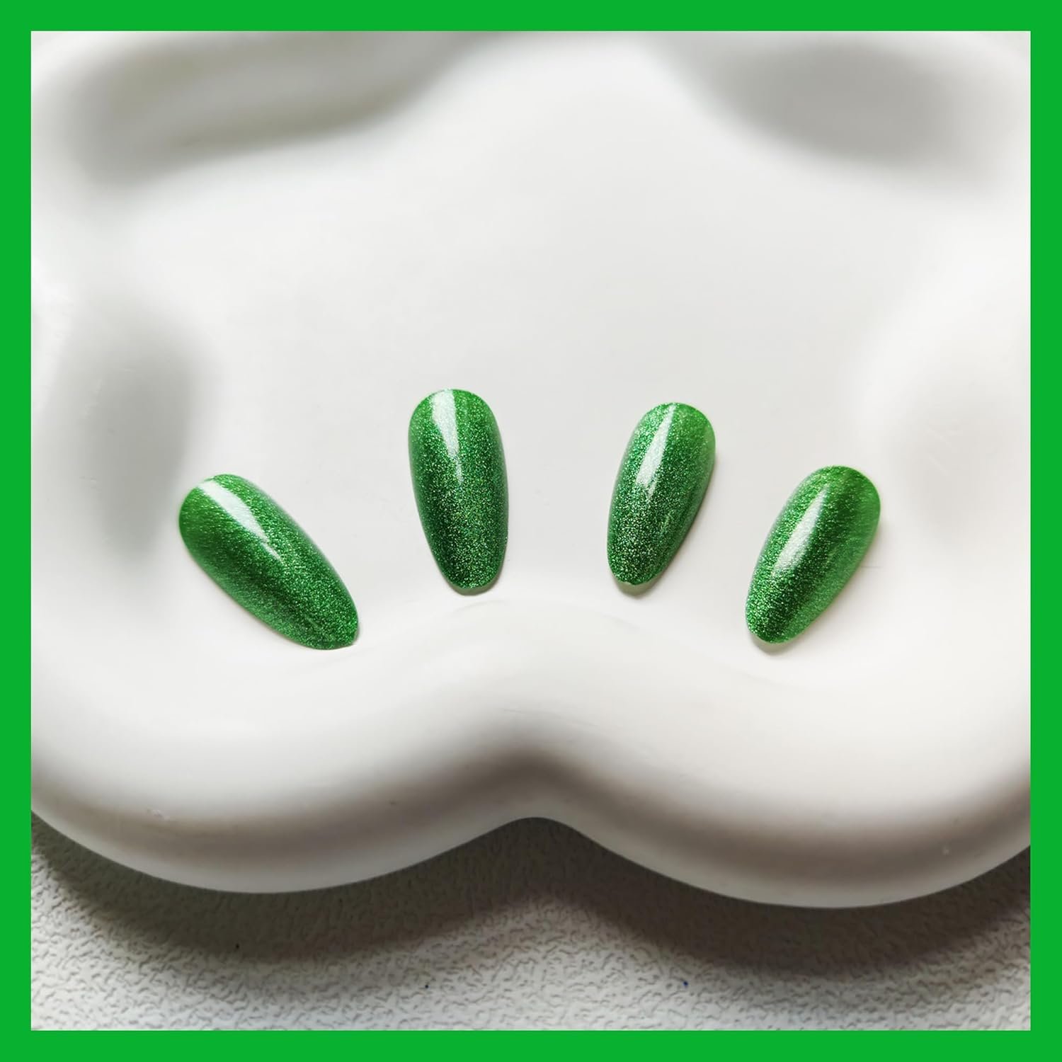【Opal Design】This green almond nail is designed with a dazzling opal, which looks like a sparkling gemstone, beautiful and noble. We believe this false nails will give you a wonderful experience!