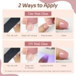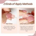 【Premium Features】: Ample softness and elasticity, good glossiness, simulation of nail texture, with glue and jelly glue, you can choose the way to use. It can be used with other nail tools for DIY styling on it.