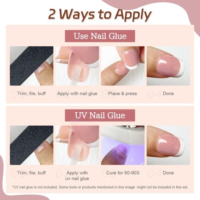 【Premium Features】: Ample softness and elasticity, good glossiness, simulation of nail texture, with glue and jelly glue, you can choose the way to use. It can be used with other nail tools for DIY styling on it.