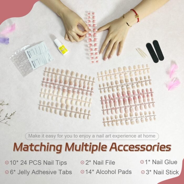 【Quick Operation and Durable】: 240 pieces of Gradient White French Tip press on nail short gel modeling construction and top coat, etc. They are all pre-made, It’s short time-consuming, taking as little as 10 minutes to complete, and lasts for 20 days