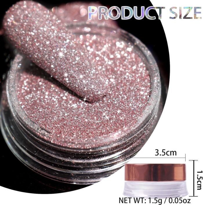 Nail Diamond Dust: You will get a well-sealed jar of 1.5g/0.05oz diamond glitter, which is a kind of reflective glitter that contains real diamonds, nail pigment powder, and pure synthetic resin powder, so the shinning effect is better than ordinary nail powder. Adding unique texture to your nail art finish. Perfectly complement chrome nails, French manicure, unicorn chrome nails and etc.