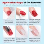 💚SIMPLE 4-STEP USE: ①File off the topcoat. ②Apply liquid latex for nails around each nail to create a protective barrier. ③Brush on the Gel Nail Polish Remover and wait 2–5 minutes for the gel to bubble up. ④Gently scrape away the softened gel with the included tool. Finally, drop a bit of cuticle oil on each nail to nourish and moisturize. Note: Read the instructions carefully before use for best results.