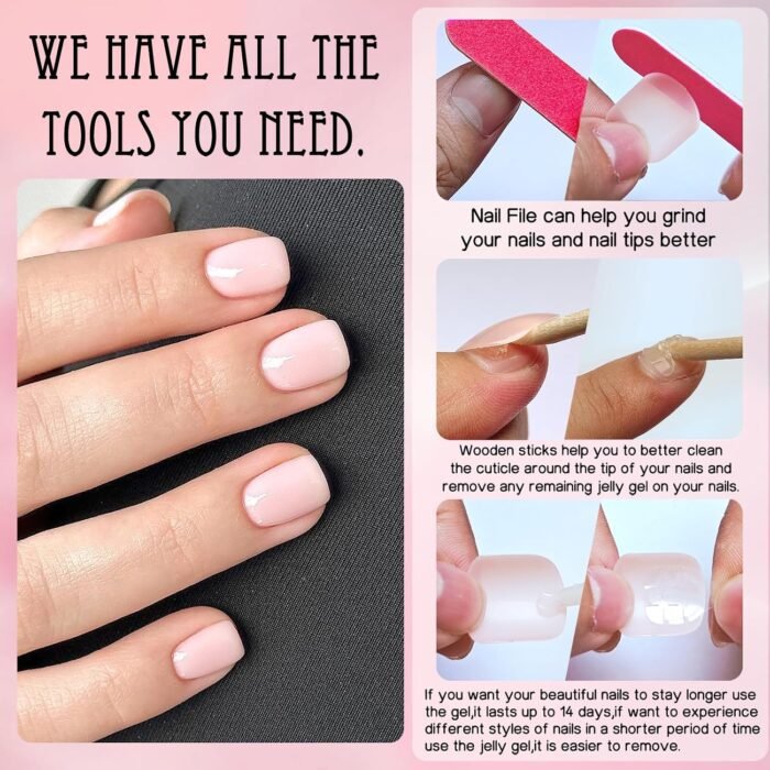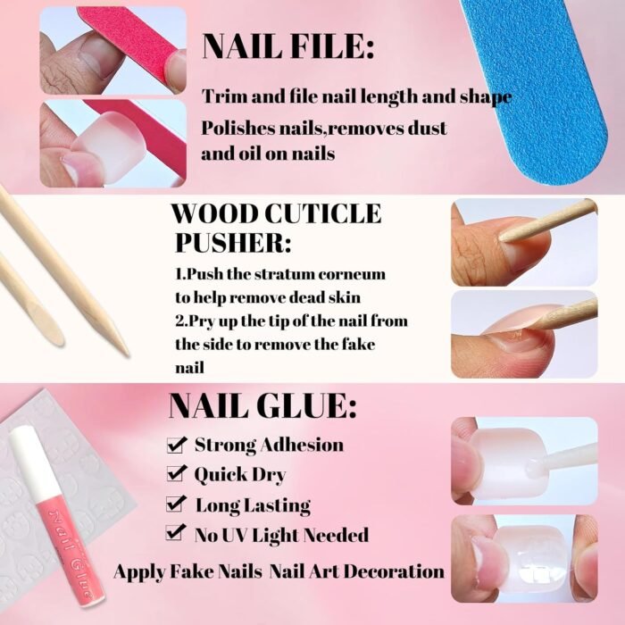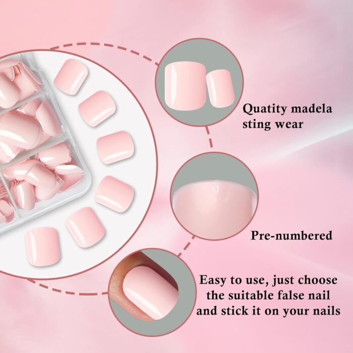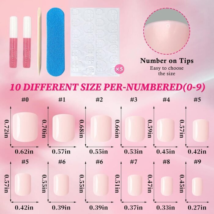 Square Press on Nails Kit: Short square nails pink come with 12 grids 240pc light pink square press on nails short length with 2 tube nail glue, 5 sheets adhesive tabs, 1pc nail sticks and 1pc nail file for quick manicure . Extra short press on nails light pink fingernails are packed with reusable case that easy for you to reach out and choose suitable size square nail tips. Short press on nails pack with glue tabs are ideal for glue on nails short length for nail salon and nail beginner or lover have quick at home manicure design.