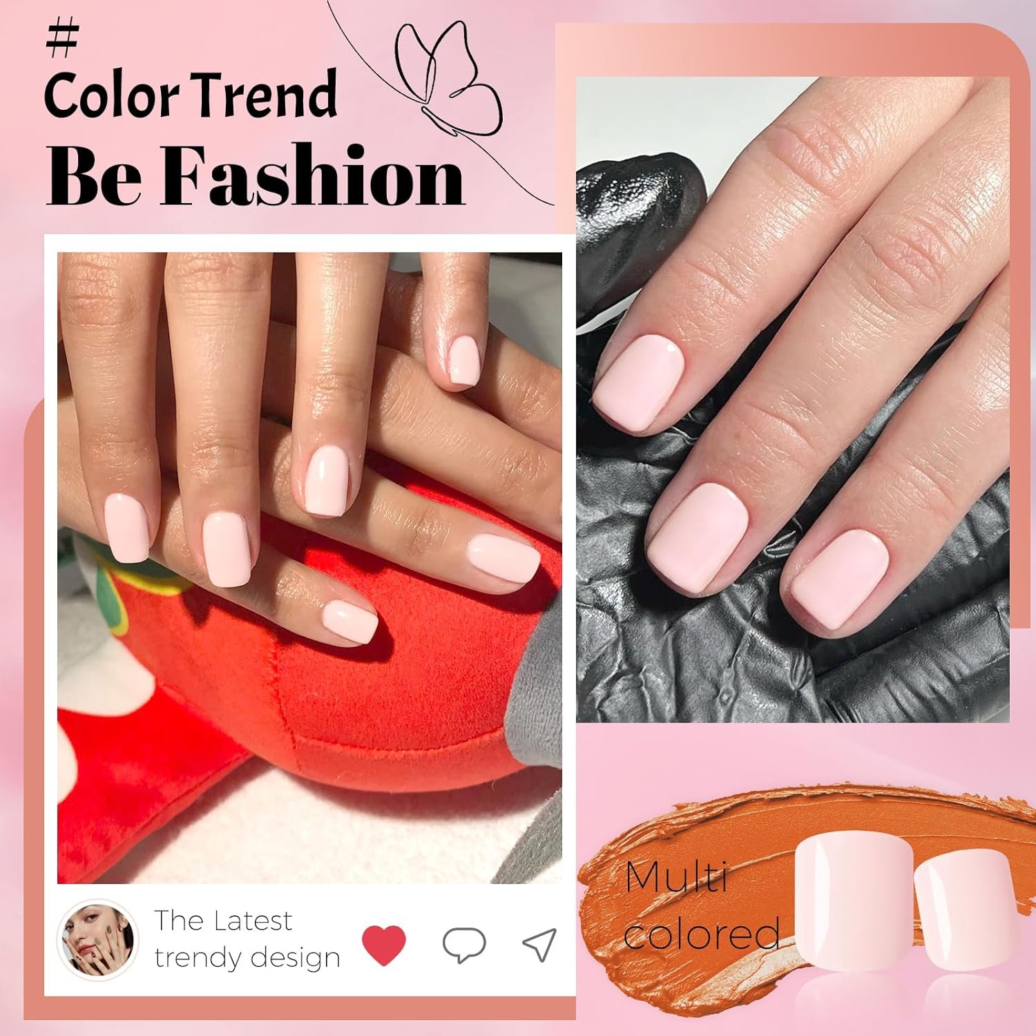 Nail Revolution Light Pink Fake Nails: Short square press on nails with glue provide a stylish look and low-maintenance solution for manicure. Light pink acrylic nails short can help to solve nail problems like short nails, unly, weak nails, soft nails, slant nails, brittle nails. Light pink nails press ons false nails feature natural-looking short square shape nails that are ideal for women or girls with active lifestyles or shorter natural nails.Pink glue on nails short square provide a quick, damage-free solution for trendy nails that fit your special or normally occasions manicure needs.