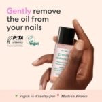 Its formula has a floral scent and is 94.5% plant-based. It is used like a nail polish remover with a cotton pad soaked in the product for a perfectly clean nail in a single swipe.