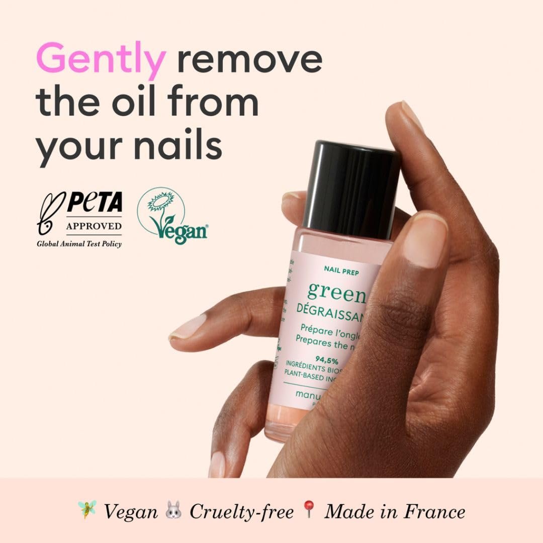 Extend the wear of your nail polish! Nail Prep allows for better adhesion and longer-lasting wear of Green polish: it prepares the nail surface by removing any traces of oils and/or impurities.