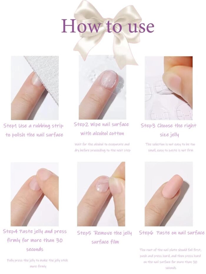 【Package Includes】 24 pieces coffin fake nails, 1 sheet of 24 pieces jelly glue, 1 piece of mini nail file, 1 piece of wooden stick and 1 piece alcohol pads.