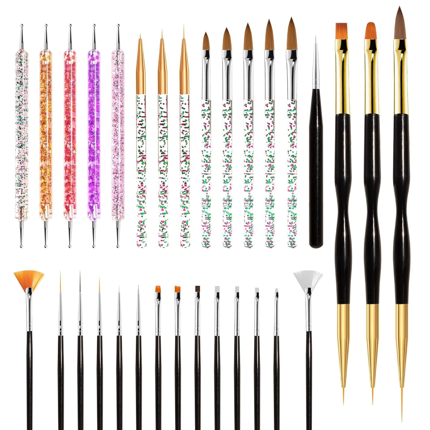MULTIFUNCTIONAL NAIL BRUSH SET: The nail brush set comes with 31 pieces, including 15 nail design brushes, 5 dual tip dotting brushes, 5 acrylic nail brushes, 3 nail liner brushes, and 3 2-in-1 nail brushes, which can satisfy your different nail designs.