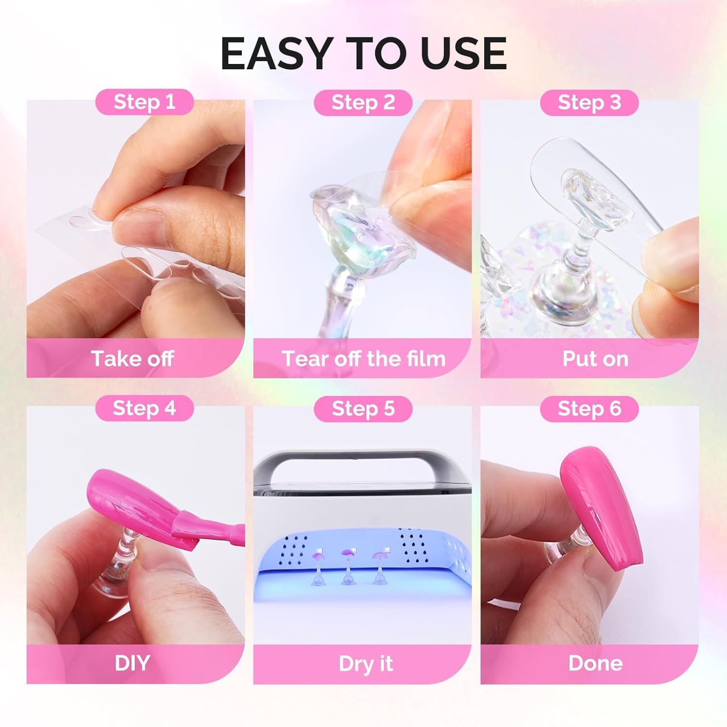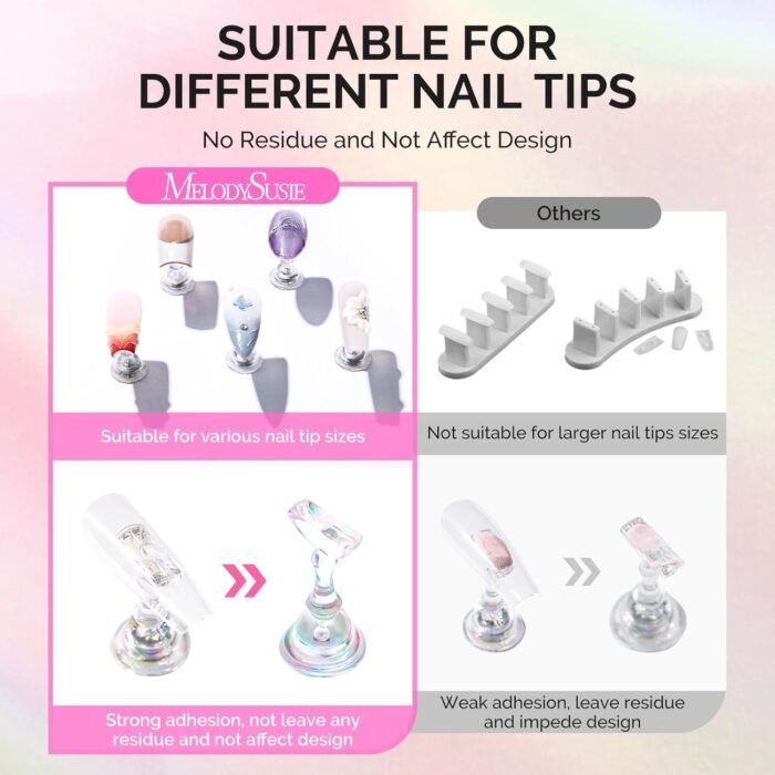 Compatible with All Nail Tips and Fake Nails: Our nail stands are compatible with all false nail tips and feature double-sided tape. Compared with traditional putty, our tape does not leave any residue and is transparent that does not affect the nail art design, which is safe to use. No matter what nail tips or fake nails you prefer, the tape can fit them well;