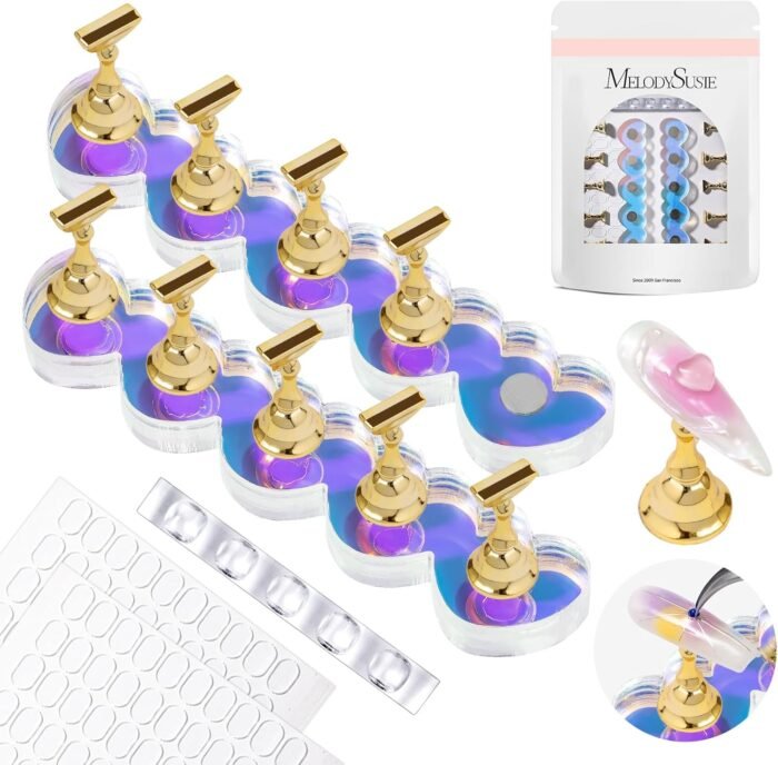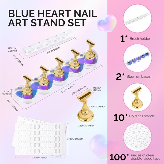 Update MelodySusie Blue Nail Stand Set: Our comprehensive nail stand set includes 2 blue heart shape thick bases, 10 nail stands, 100 pieces of reusable double-sided tape and equipped with 1 nail brush holder to keep your brushes within easy reach, making it the ultimate solution for all your nail art needs and desk organizer;