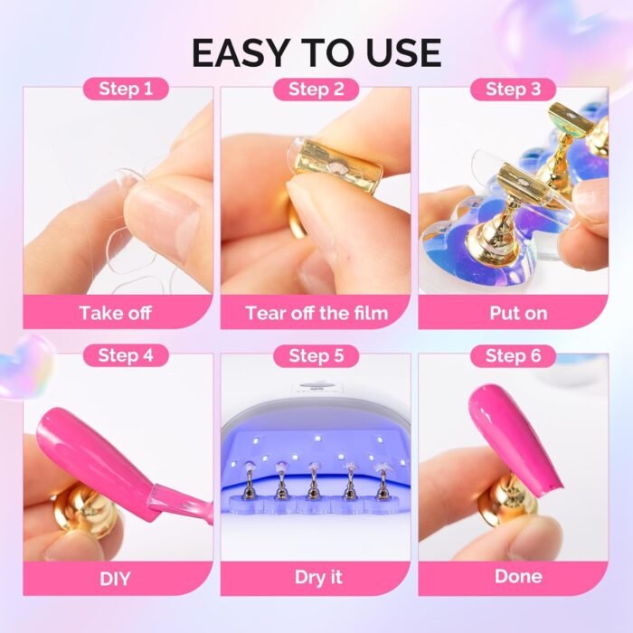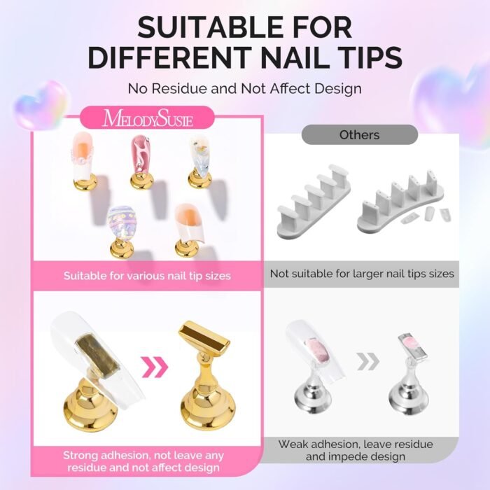 Compatible with All Nail Tips and Fake Nails: Our nail stands are compatible with all false nail tips and feature double-sided tape. Compared with traditional putty, our tape does not leave any residue and is transparent that does not affect the nail art design, which is safe to use. No matter what nail tips or fake nails you prefer, the tape can fit them well;