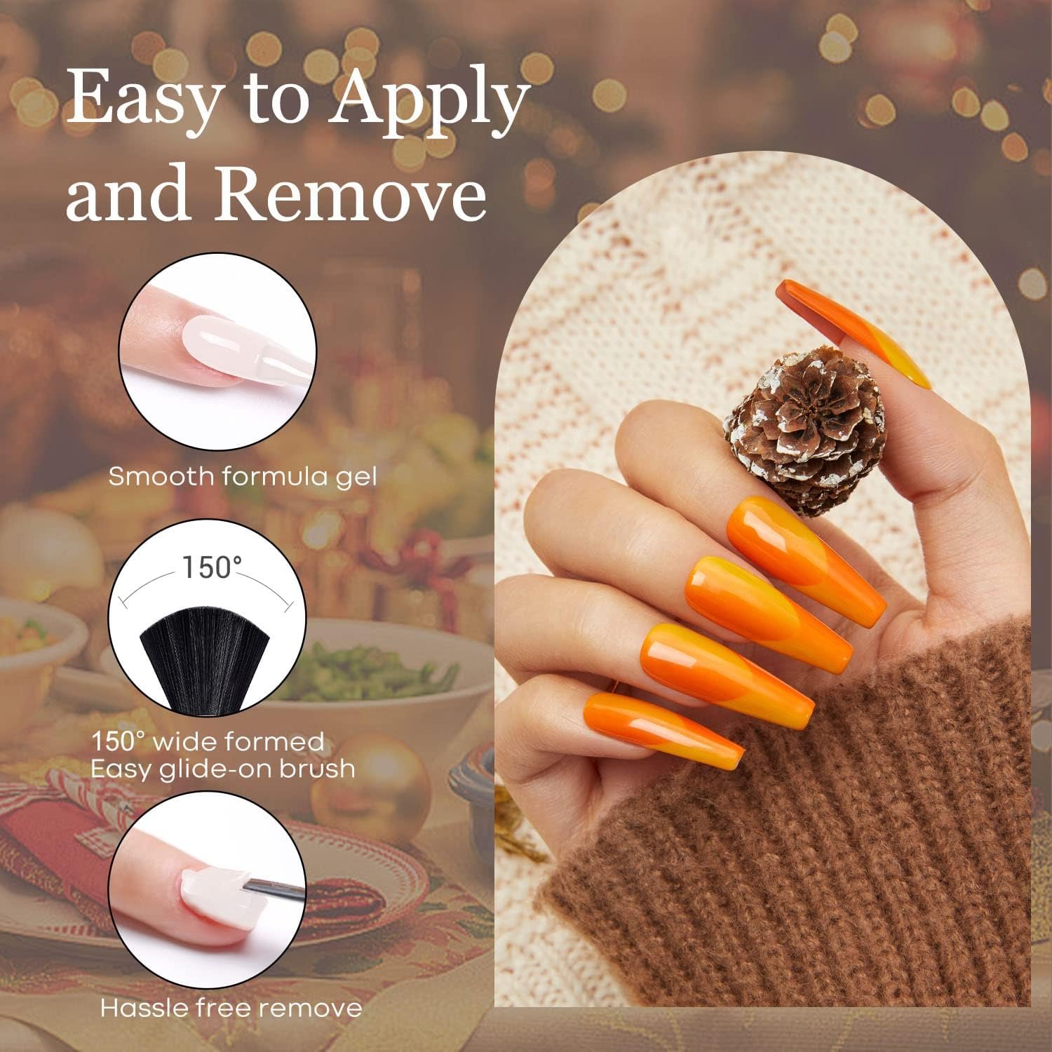 [2024 Trendy Gel Nail Polish Kit]: 6 of the most iconic and trendsetting colors – Carrot Orange, Glitter Red, Dark Red, Coffee Brown, Nude Tone, Wood Brown