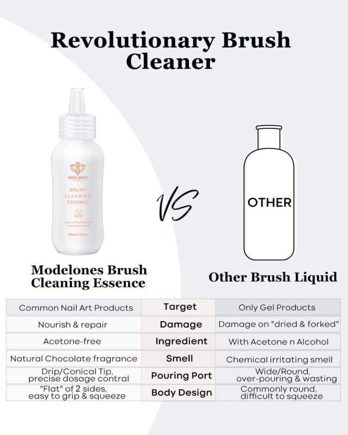 【Multi-Functional】 You can use Modelones brush cleaning solution in several ways: 1) Breaking in new brushes and removing sealing wax, 2) Moisturizing bristles to improve the application process and reduce brush streaks, and 3) Dissolving and cleaning residual color gel to change up your next color and prevent color mixing.