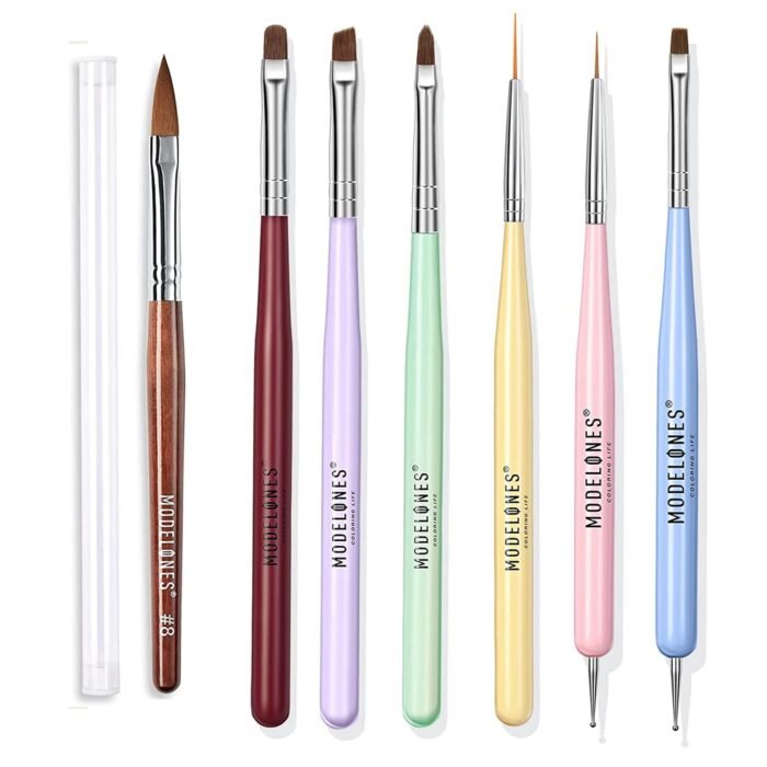 🌈 MULTIFUNCTIONAL NAIL ART KIT: Modelones nail art brushes set come with 6 different nail designs pen & 1 Acrylic Nail Brush Size 8 , Including nail paint brushes, extension gel brush, nail carved pen, nail art liner brush, and double nail dotting pen. They can create any french manicure style you want.