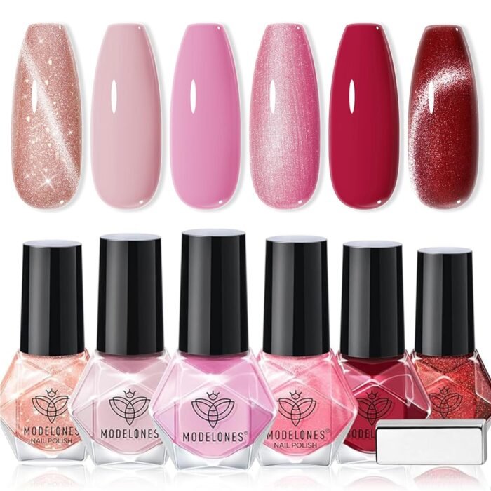 User-Friendly for All Levels: Modelones pink collection nail polish are equipped with magnetic suction tools.Whether you’re a beginner or a pro, these pearl nail polishes are easy to apply and offer endless creative possibilities. Beginners can achieve beautiful results with a single color, while advanced users can create intricate designs with different color combinations. With six colors in one set, you’ll have a vast palette at your fingertips.