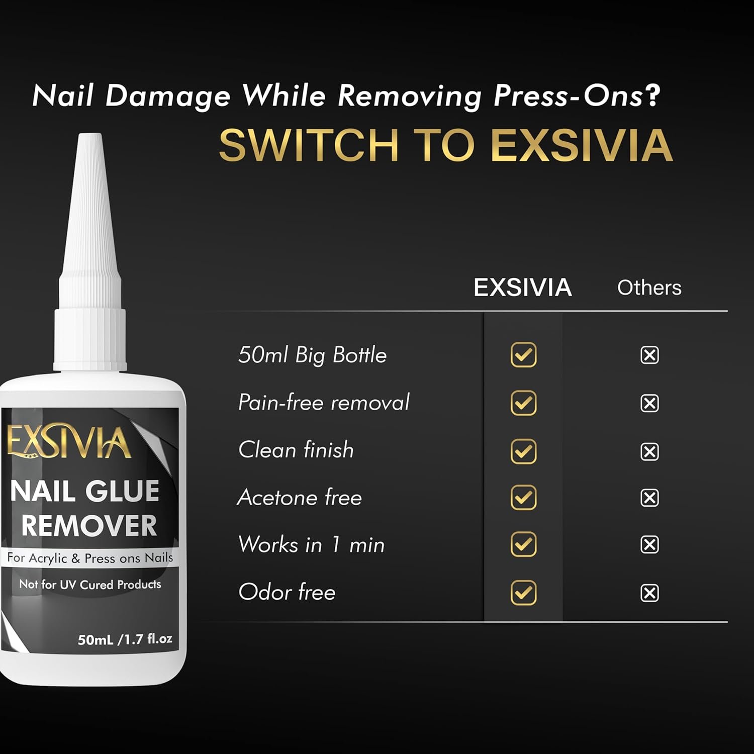 GENTLE, NAIL-SAFE FORMULA Formulated to help remove glue without excessive thinning, peeling, or scratching of the nail surface. Unlike harsh acetone removers, this low-odor formula is designed for regular use and suitable for sensitive nails and cuticles.