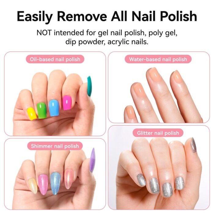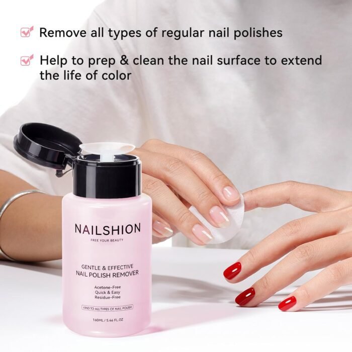【Quick Gentle Removal in 5s & Clean to Residue-Free】Nailshion nail polish remover easily removes regular nail polish in 3 to 10 seconds while nourishing nails. With this acetone-free formula, it effectively removes even dark shades of regular nail polish without drying or weakening nails, helps to prep and clean nails, and promotes nail health.