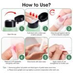 Easy Application for Removing Regular Nail Polish: Press down on the pump head to saturate the cotton pad with nail polish remover. Press it against each nail for 3-10 seconds, then rub it repeatedly until the polish is completely removed. Removing thick / glitter nail polish takes more time. Not intended to remove gel polish or acrylic nails. Always online to answer your questions.