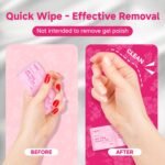 【 Suiable For All Kinds Of Nails 】Effective in removing all kinds of nail polish, these nail removers are an ideal solution for gel and even acrylic nails. 100 Pack provides a soft and effective removal experience