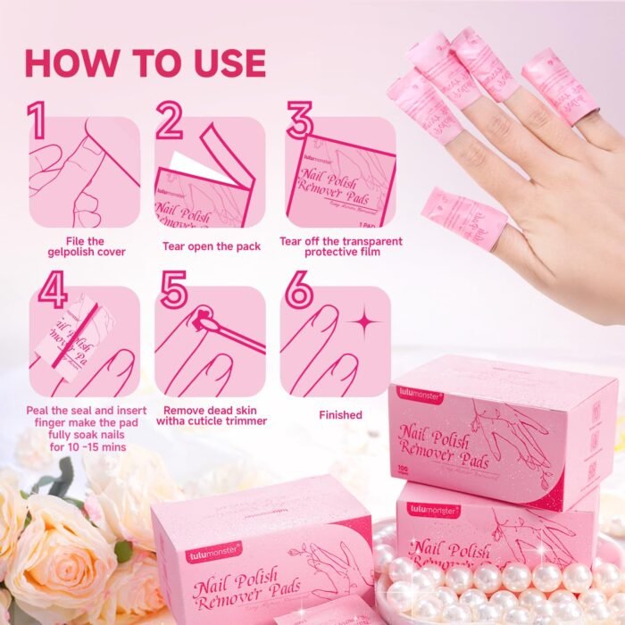【 Non-Toxic Nail Polish Remover 】The LULUMONSTER nail polish remover wipes are individually packaged and fully soaked with nail polish remover, making them easy to use. Nail polish remover pads effectively remove polish without causing damage or dryness, perfect for sensitive skin