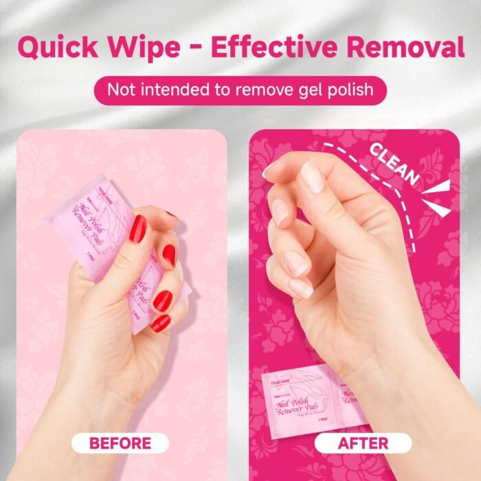 【 Convenient And Travel-Friendly】These Nail Polish Remover Pads come in compact,pocket-sized packaging, ideal for on-the-go use. Multipurpose and individually packaged wipes are available for easier storage and portability