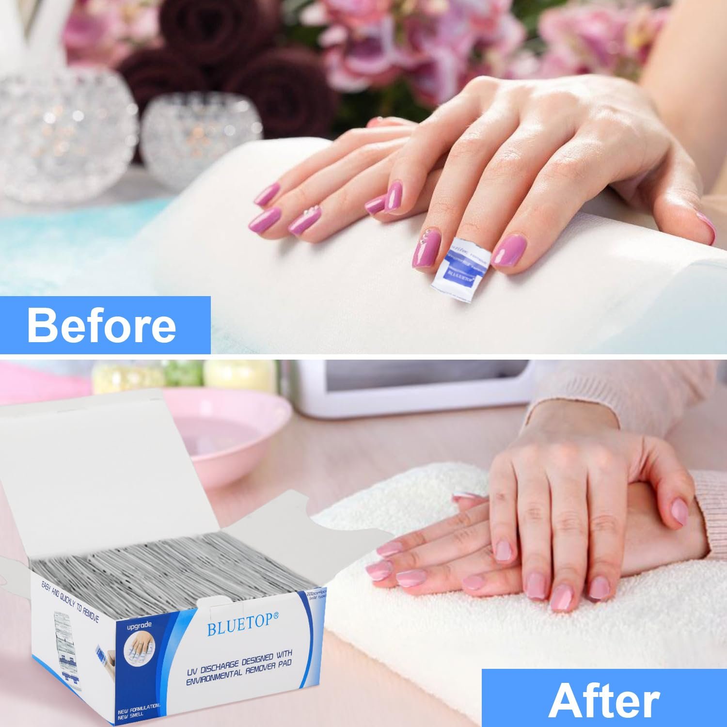 ⭐【GEL REMOVER PAD GUIDE】 1.Use the nail file to polish the nail surface. 2. Tear off the packaging and tape(use as soon as possible after opening the bag ). 3. Fold cotton pads to fit nails 4. wait patiently 5-10 minutes. 5.remove gel nail polish with a stainless push.More easier & more quick to remove your nail polish. This is so much easier than trying to wrangle with a cotton ball and cut foil. Each pad is sealed,these are individually wrapped as it prevents spillage and can be easily stored away.