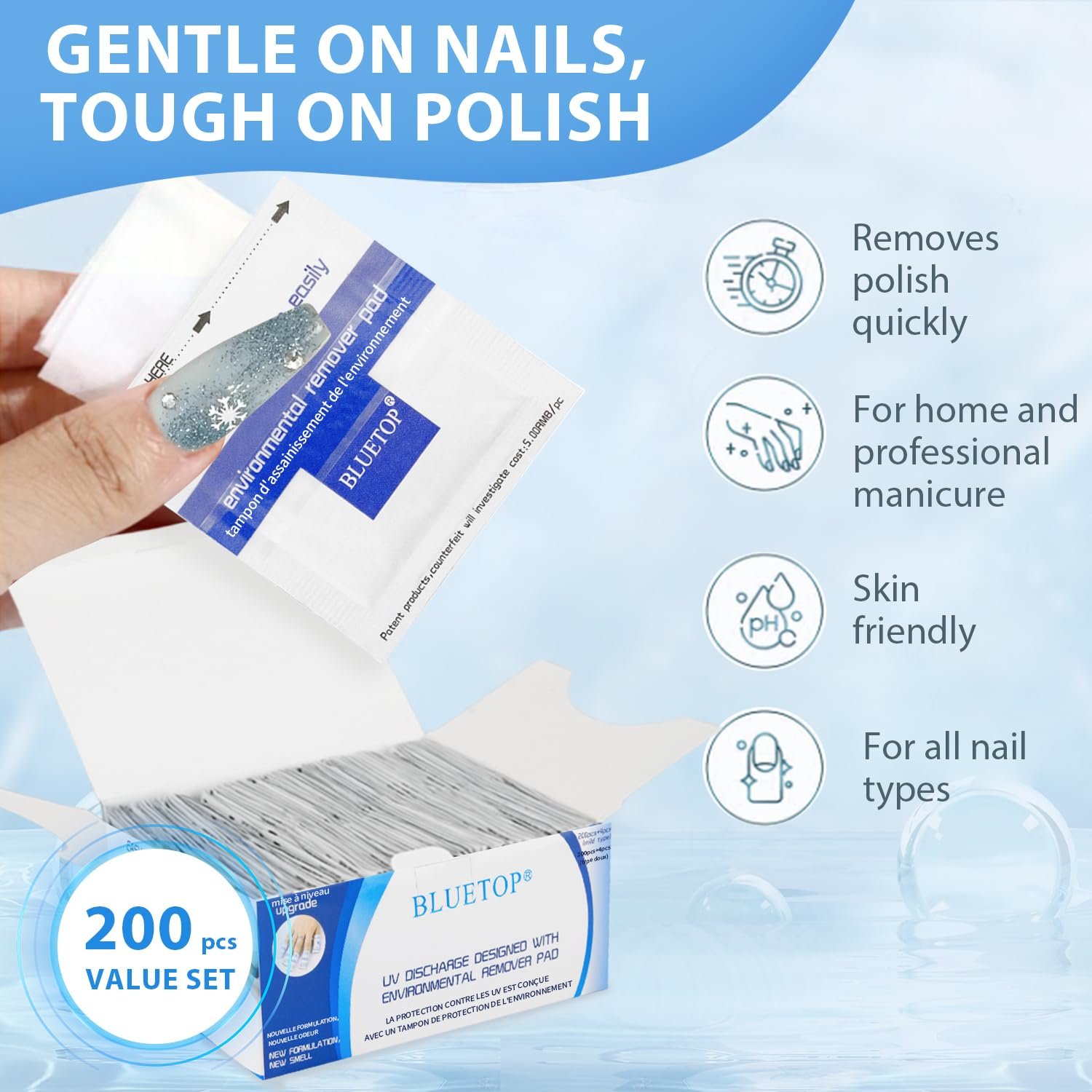 ⭐【SAFETY & HEALTHY】 The solution on the gel nail wipes is work easier at getting the polish off. Strong moisture absorption and decontamination capabilities, no additives and the nail cleaner remover is free from toxic. After the nail polish is removed your nails will remain moisturized and do not hurt the nails, safe on skin and easy to use.For gel polish, dip powder or thick polish, soak a little longer or use another more.