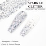 【7-10DAYS LONG WEAR NAIL POLISH】This sparkle nail polish glitter is waterproof and no easy to peel off. Compared to other fingernail polish, this clear sparkle nail polish does not easy to flake and lasts longer, it can last for 7+ days with perfect shine under proper application