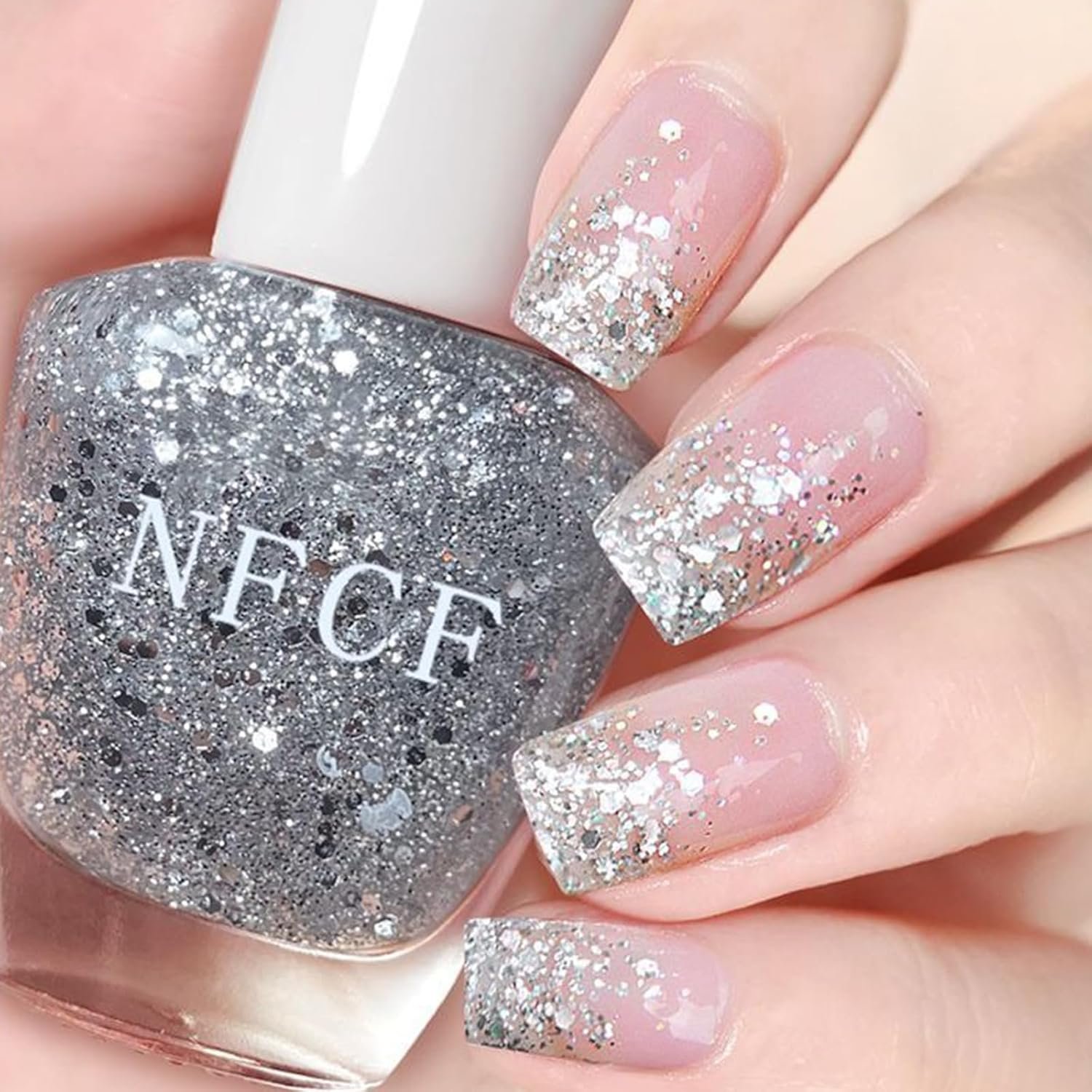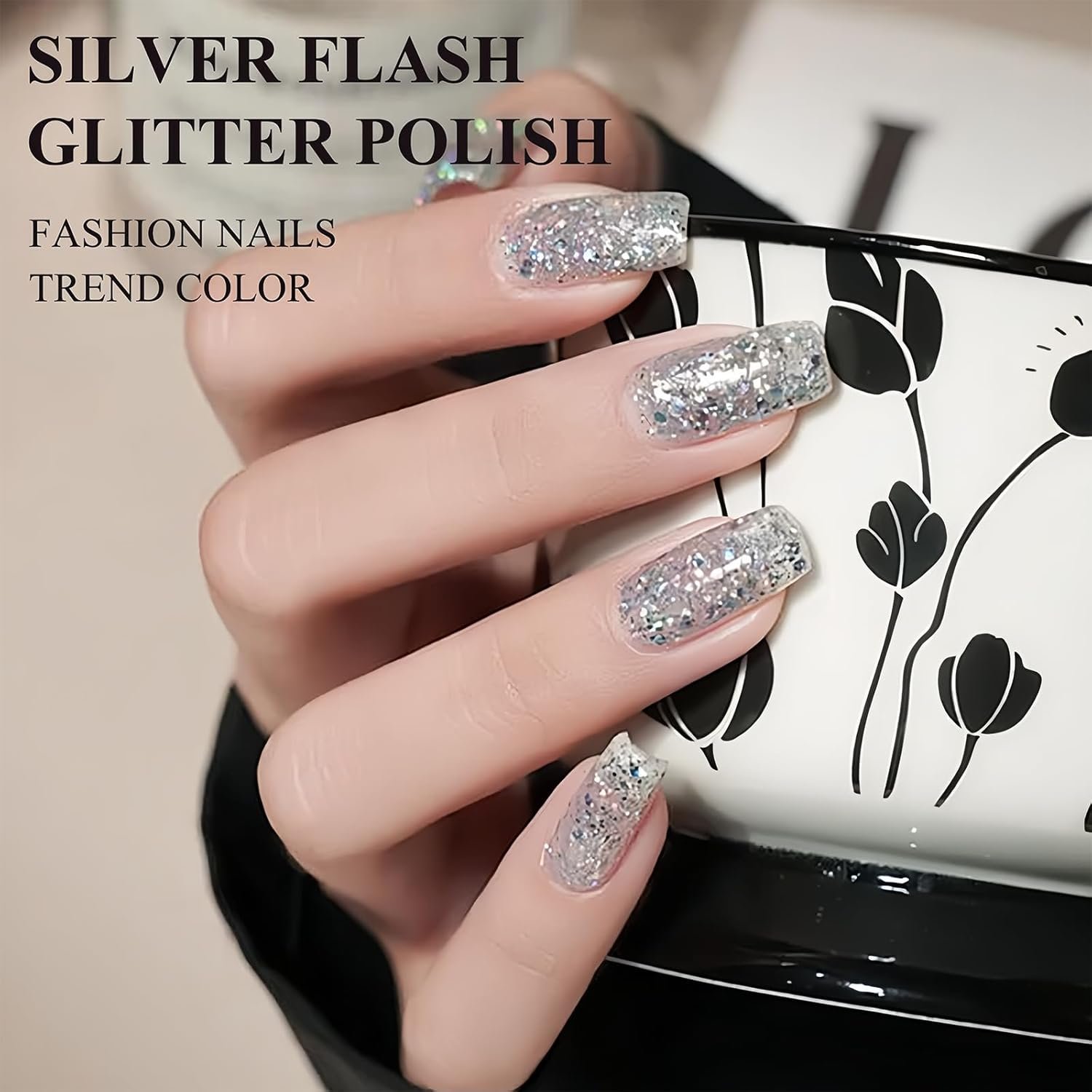 【IDEAL PRESENT FOR HER】This shiny nail polish glitter is a one of a kind gift for a family member or friend on a special occasion such as new year, birthdays, anniversaries, valentine’s day, or mother’s day, halloween, thanksgiving day,christmas and etc. This silver flash glitter polish will captivate her