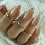 【Exquisite Design】 The gold glitter on the false nails is very shining, and the design of nude color and gold sequins makes your nails very fashionable and dazzling.