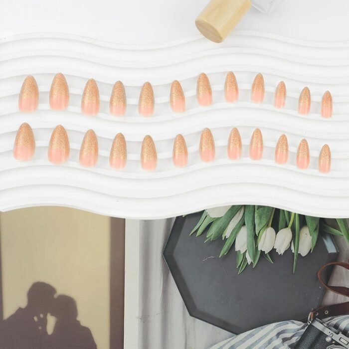 【Exquisite Design】 The gold glitter on the false nails is very shining, and the design of nude color and gold sequins makes your nails very fashionable and dazzling.