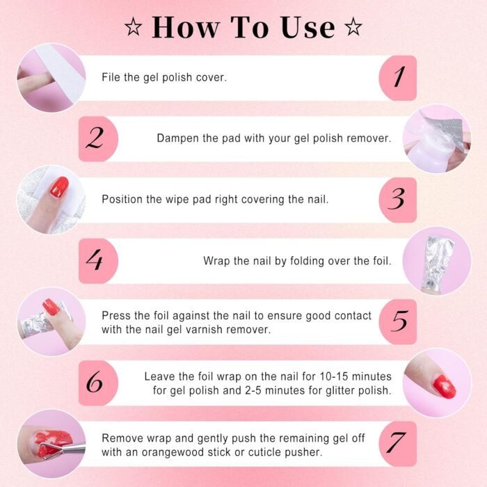 SAFE TO USE: Disposable single-use foil wraps ensure sanitary and hygienic gel polish removal. These gel removers work quickly for gel polish, acrylic nails and UV gel, which makes your acrylic nail removing sessions down from 30 minutes to 10 minutes or less. Please note that Acetone remover is not included.