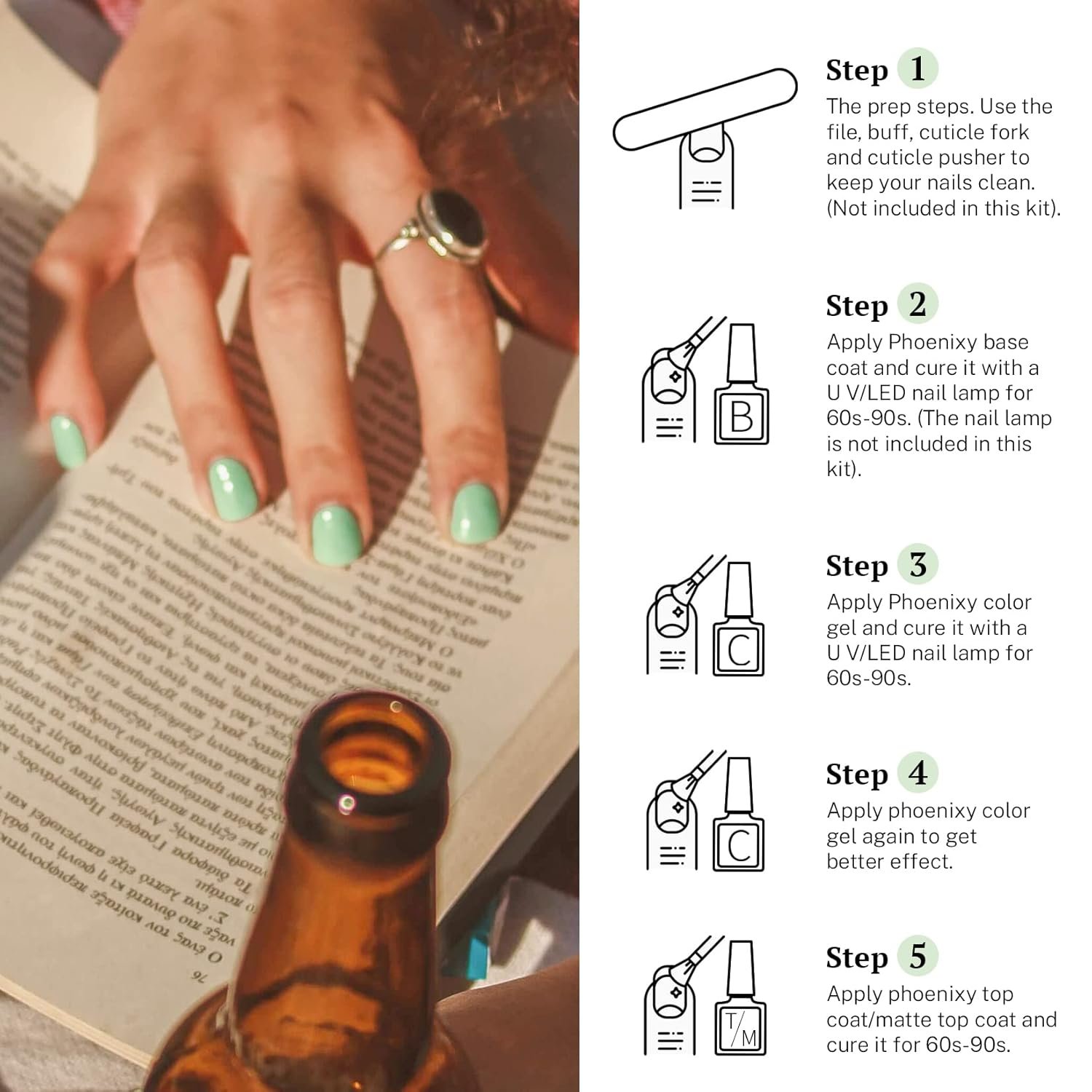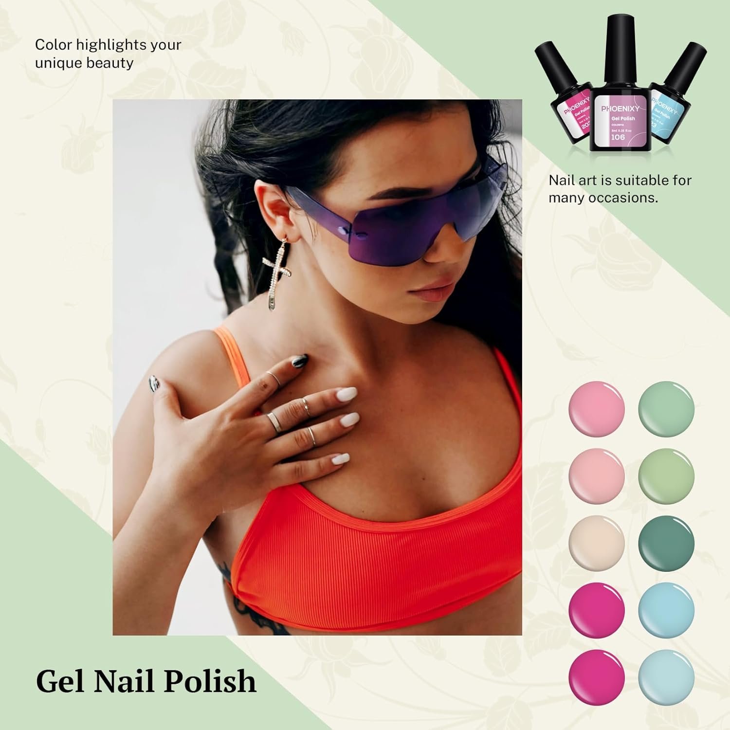 [HIGH QUALITY& LONG LASTING]: Made of natural resin, Phoenixy gel nail polish contains botanical ingredients and lowest smell, harmless to skins or nails. The higher quality promises better adhesion and gloss, smooth application, and strong color-locking ability. The nail polish can last more than 3 weeks with proper application (keep your nails clean with file and buffer before applying base coat). Take a skin test before use. If any discomfort or allergy occurs, please stop using it immediately.
