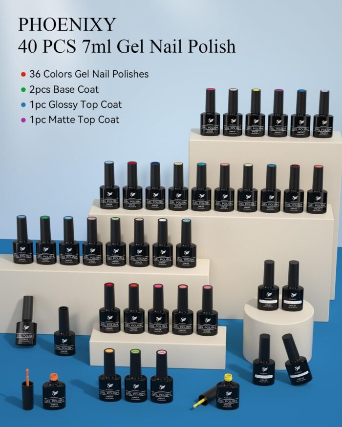[Phoenixy Gel Nail Polish Set] Phoenixy gel polish set includes 36 colors gel polish, base coat, glossy top coat and matte top coat. A cost-effective kit for manicure beginners and lovers. With some practice, you can get beautiful nail art for all seasons and occasions- parties, holidays, work or daily life.