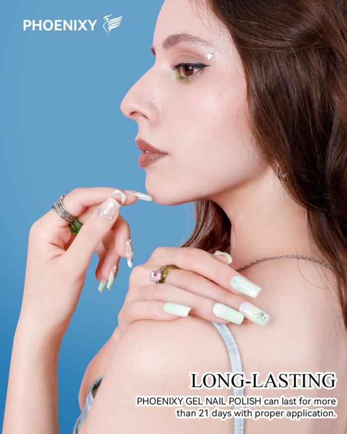 [High Quality & Long Lasting] Made of natural resin, Phoenixy gel nail polish contains botanical ingredients and lowest smell, harmless to skins or nails. The higher quality promises better adhesion and gloss, smooth application, and strong color-locking ability. The nail polish can last more than 2 weeks with proper application (keep your nails clean with file and buffer before applying base coat). Take a skin test before use. If any discomfort or allergy occurs, please stop using it immediately.