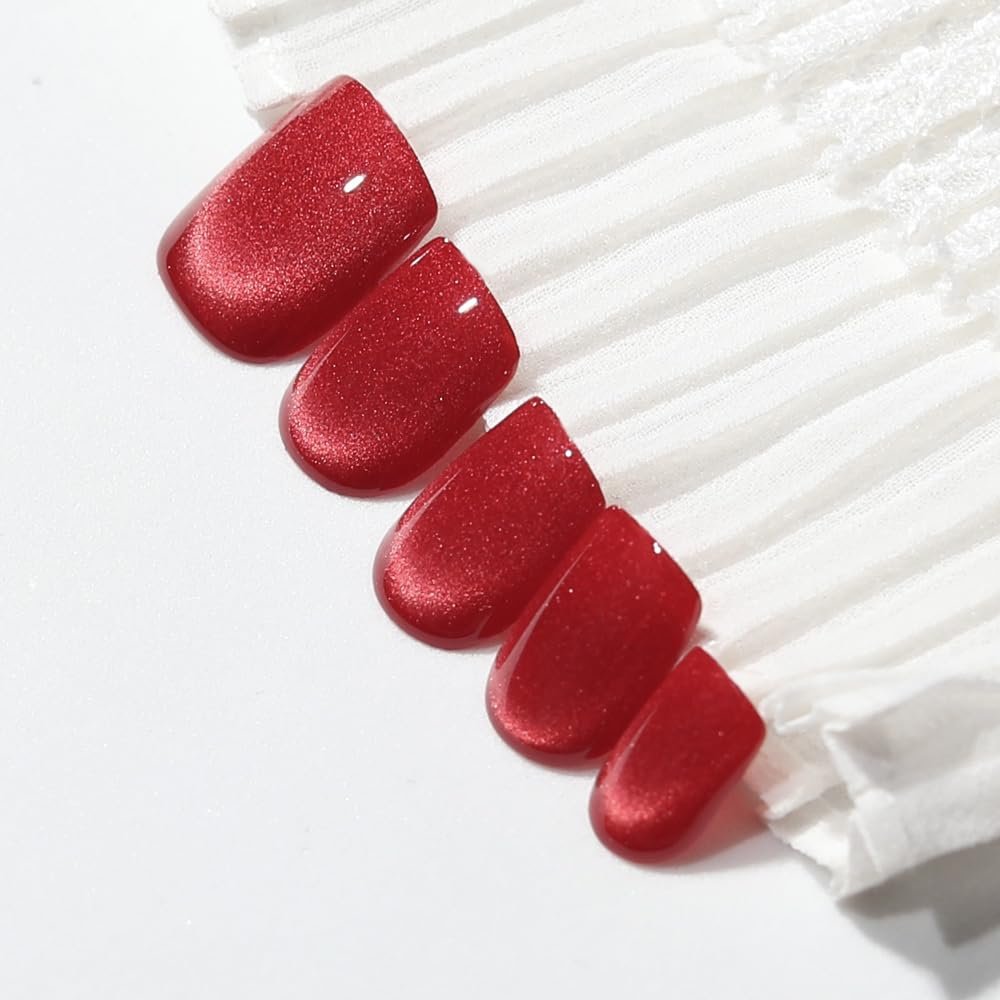 Gel Effect and Color Performance: As shown in our video, these short cat eye press on nails design displays a ruby-like flash under different lighting angles, producing a subtle reflective shine. The dynamic light changes enhance the overall luxurious and captivating effect