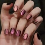 Easy to Apply:Purple cat eye fake nail with glitter designs just choose the nail piece that suits you, polish the nail bed, paste the jelly glue we give away, and press trendy nails for 30s to get the natural manicure that girls like.