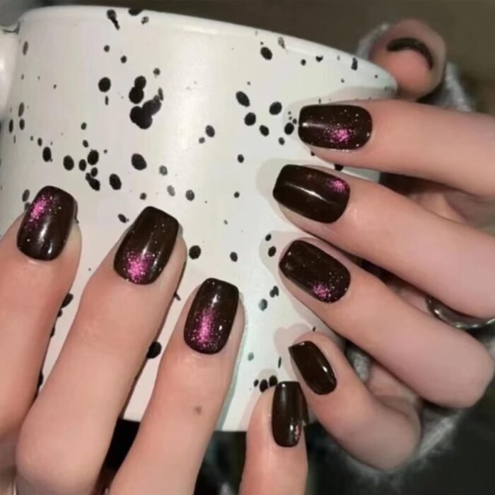Easy to Apply:Purple cat eye fake nail with glitter designs just choose the nail piece that suits you, polish the nail bed, paste the jelly glue we give away, and press trendy nails for 30s to get the natural manicure that girls like.